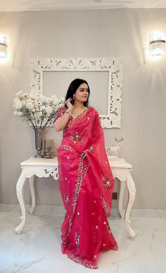 Le plus récent ensemble de créateurs tendance et fantaisie Saree en soie Khadi en organza pur et doux avec broderie et séquence de 3 mm à vendre