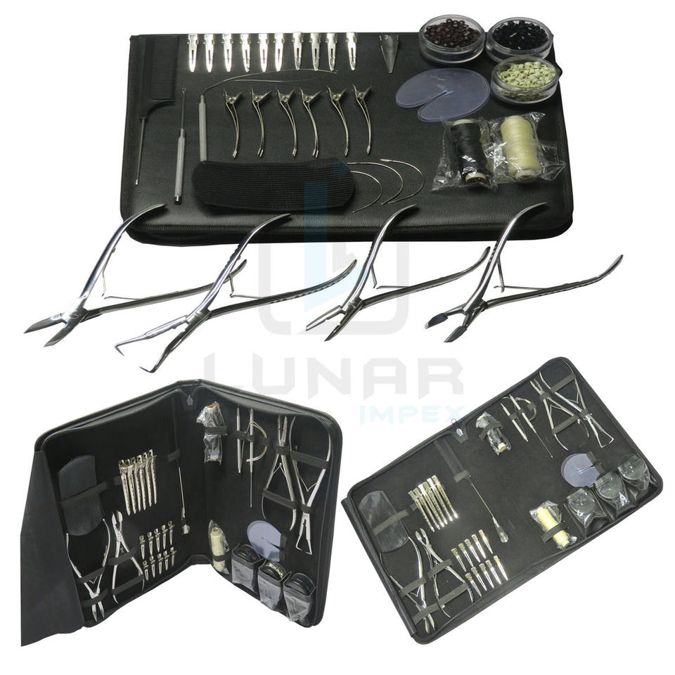 Dernier nouveau Kit d'outils d'extension de cheveux 2023 avec accessoires de Salon complets en finition polie argentée