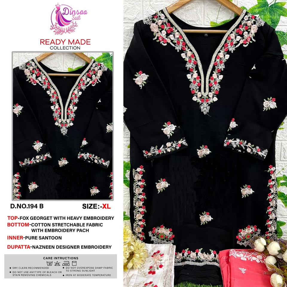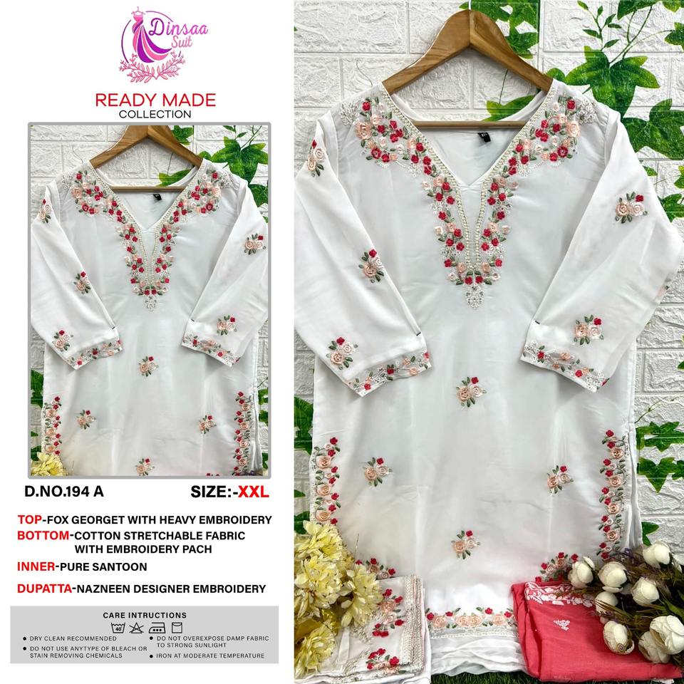 Coton Salwar Kameez Avec Broderie & Dentelle Wor