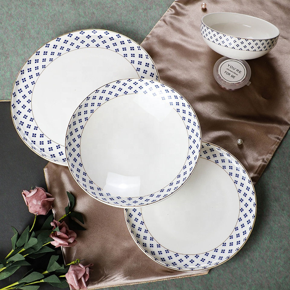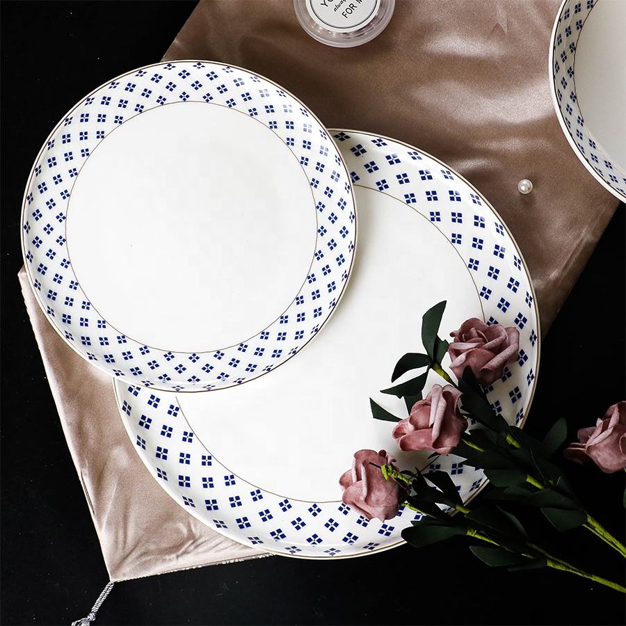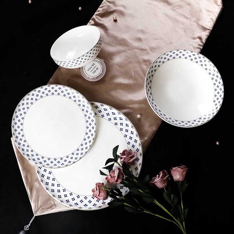 Derniers ensembles de dîner en porcelaine osseuse décalcomanie service de table de luxe en porcelaine fine pour le service du dîner