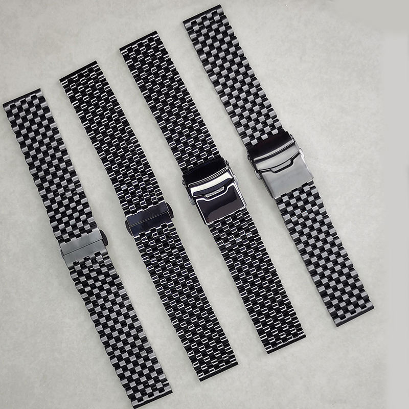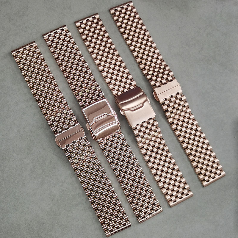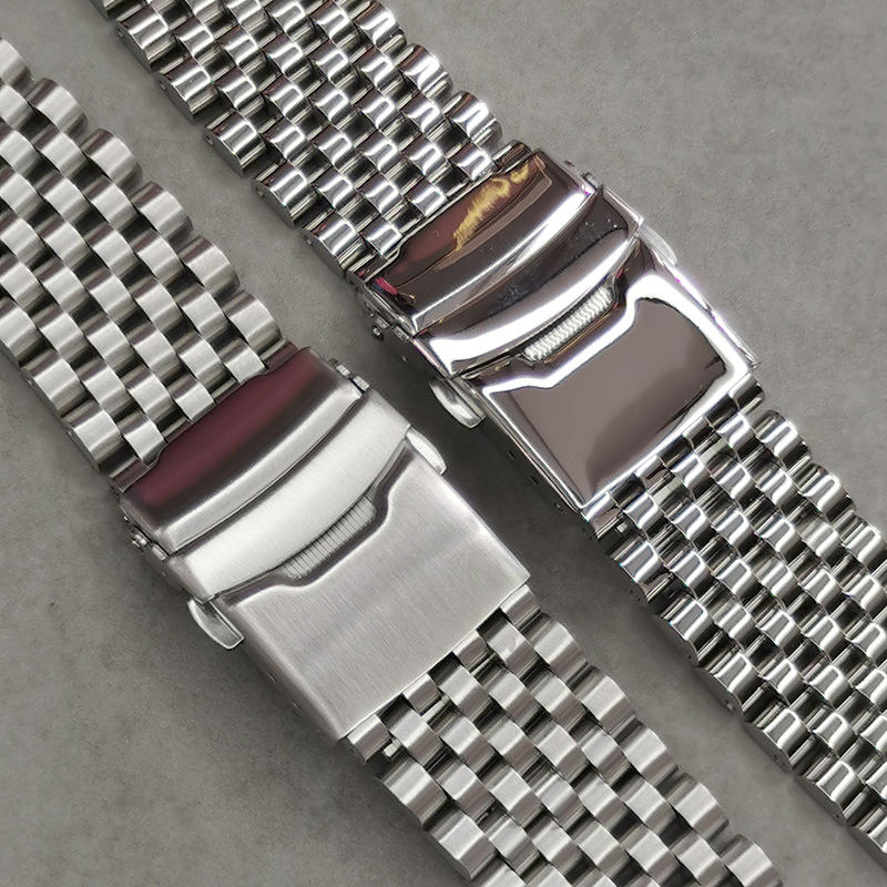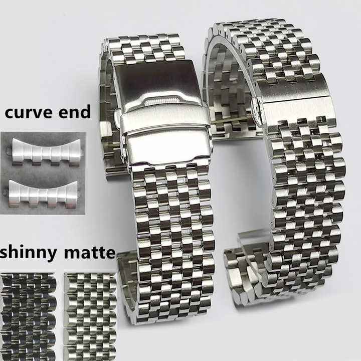 Dernier modèle de bracelet de montre en acier inoxydable poli mat à 7 maillons courbes avec fermoir déployant