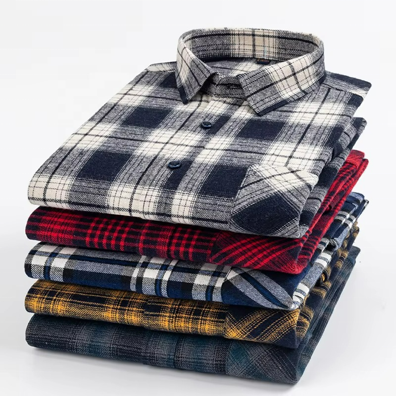 Nouvelles Chemises en Flanelle 100% Coton pour Hommes, Boutonnées, Style OEM/ODM, Chemises à Carreaux à Manches Longues Tendance pour Hommes, Chemises Oversize en Tissu