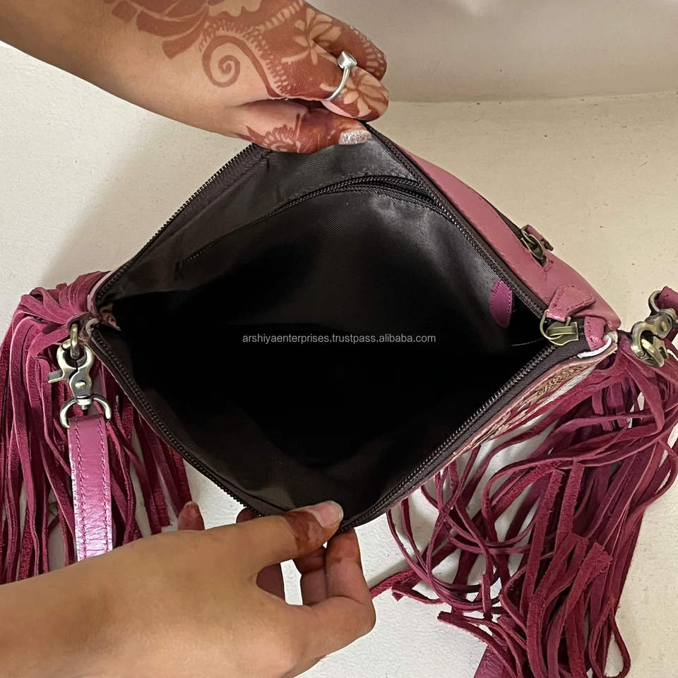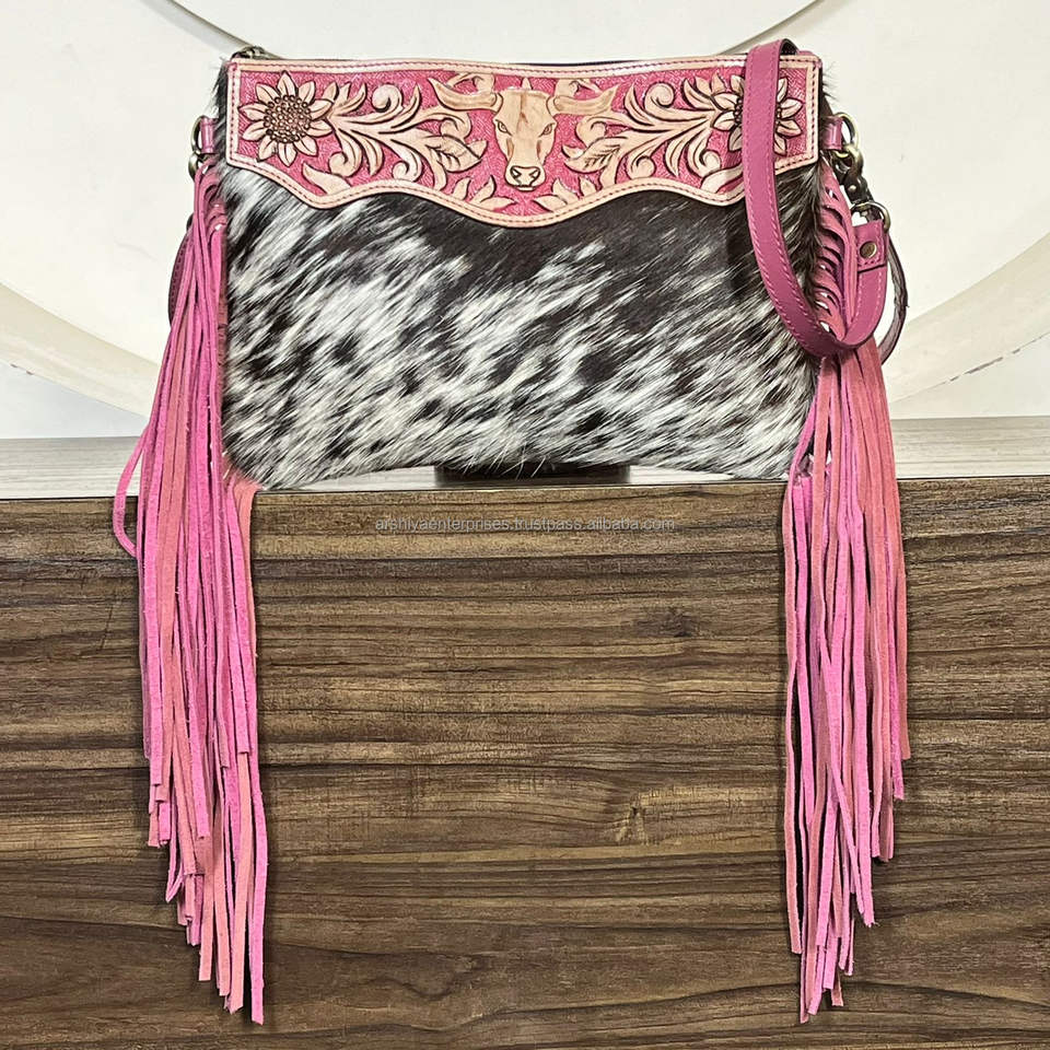 Product name:Hand Tooled Cowhide Crossbody Fringe Bags