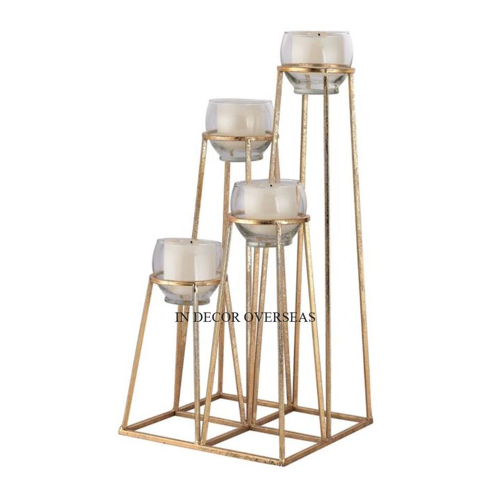 Dernier modèle arrivée de haute qualité plaqué or de qualité supérieure bougeoir en métal centres de table de mariage accessoires de décoration
