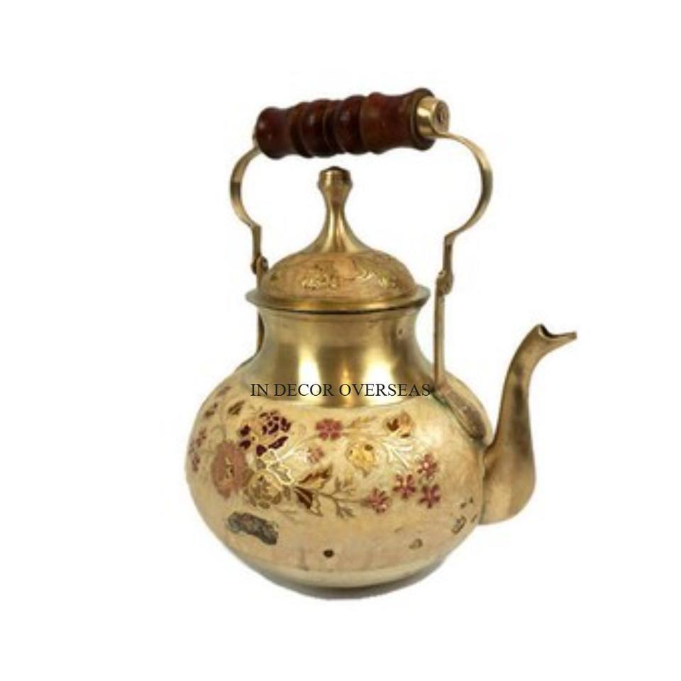Dernier modèle arrivée vente chaude argent brillant poli et plaqué or première qualité laiton fait théière et bouilloire d'Inde