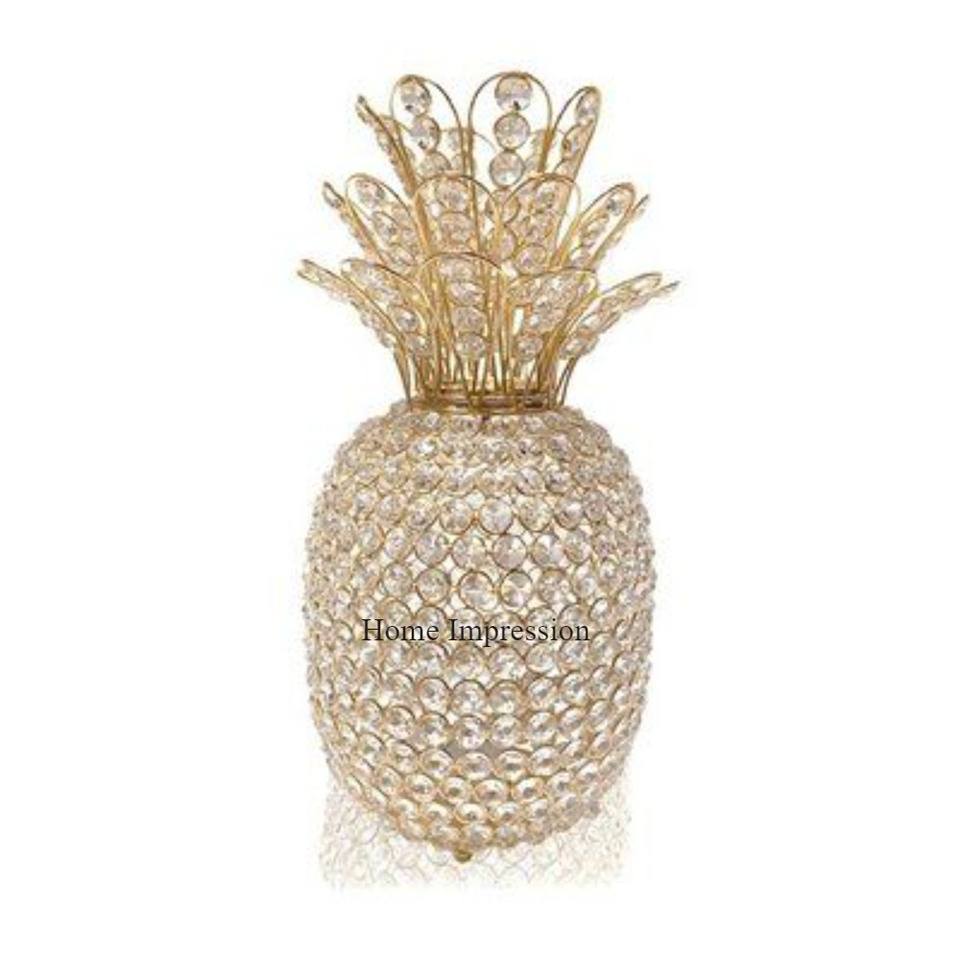 Dernier modèle arrivée ananas Designer fils métalliques plaqués or et cristal clair fait bougeoir pour les décorations de mariage