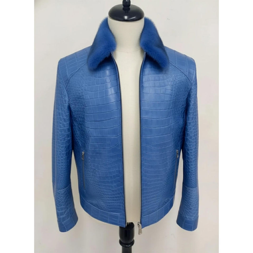 Dernière conception de veste en cuir de crocodile gaufré pour hommes, logo personnalisé, style motard en peau de serpent, veste coupe-vent d'hiver, fabricant