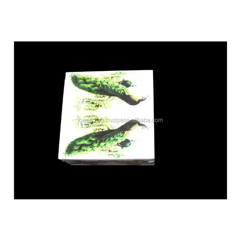 Dernière conception de paon MDF boîte-cadeau en bois impression numérique finition bois de teck poli élégant tenture murale boîte décorative cadeaux