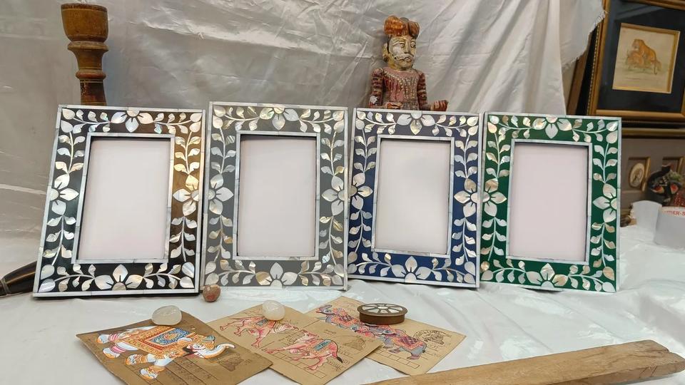 Cadre photo tendance avec incrustation de fleurs en nacre blanche, décoration élégante pour la maison et l'hôtel, idéal pour les cadeaux