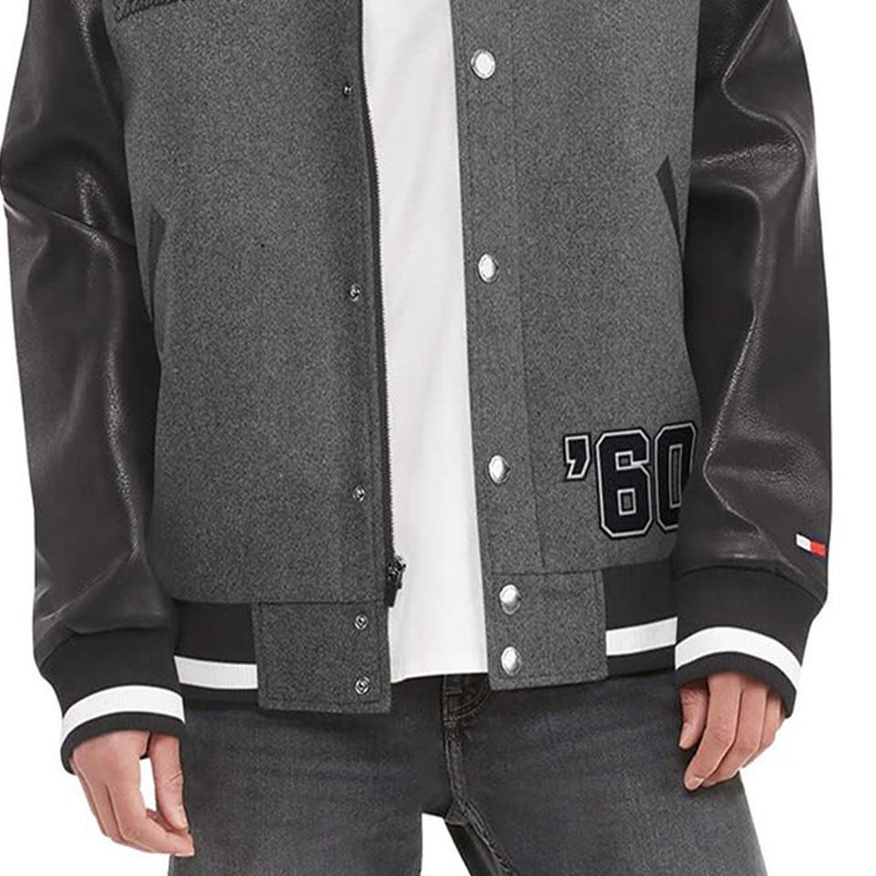 Veste universitaire en laine à col côtelé gris foncé grande taille pour hommes Letterman College Baseball Bomber Veste universitaire pour hommes