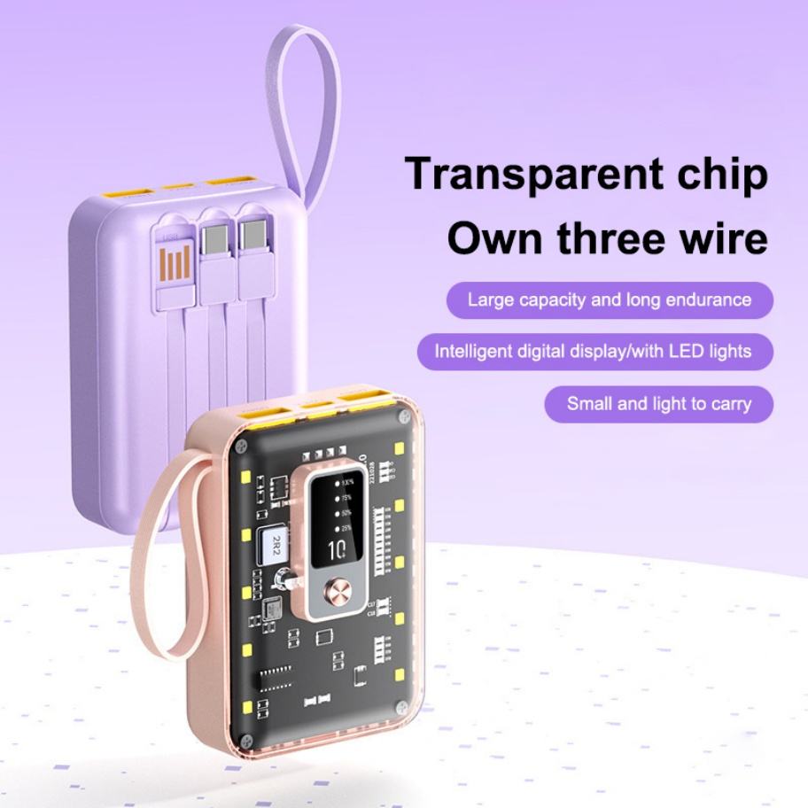 Dernière batterie externe 10000 mAh 10W avec câble intégré, charge rapide, affichage LED, banques d'alimentation universelles avec lumière LED