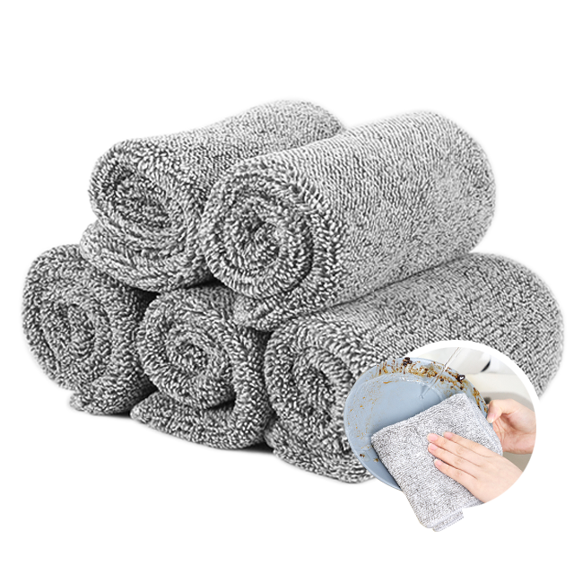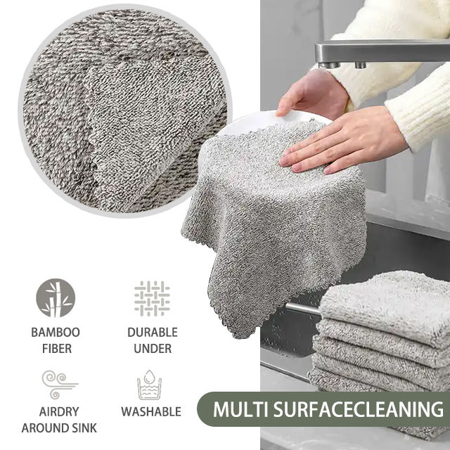 Dernière serviette en microfibre de bambou de qualité supérieure Super absorbant molleton de corail chiffons de nettoyage torchon de cuisine