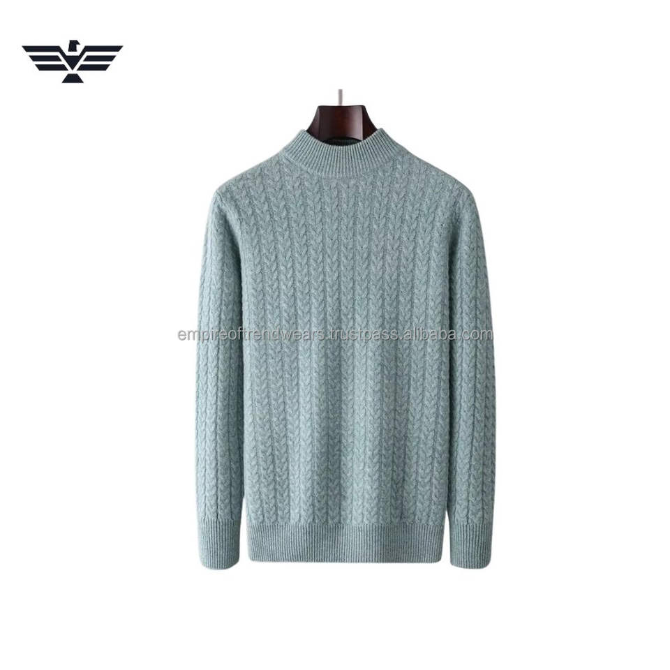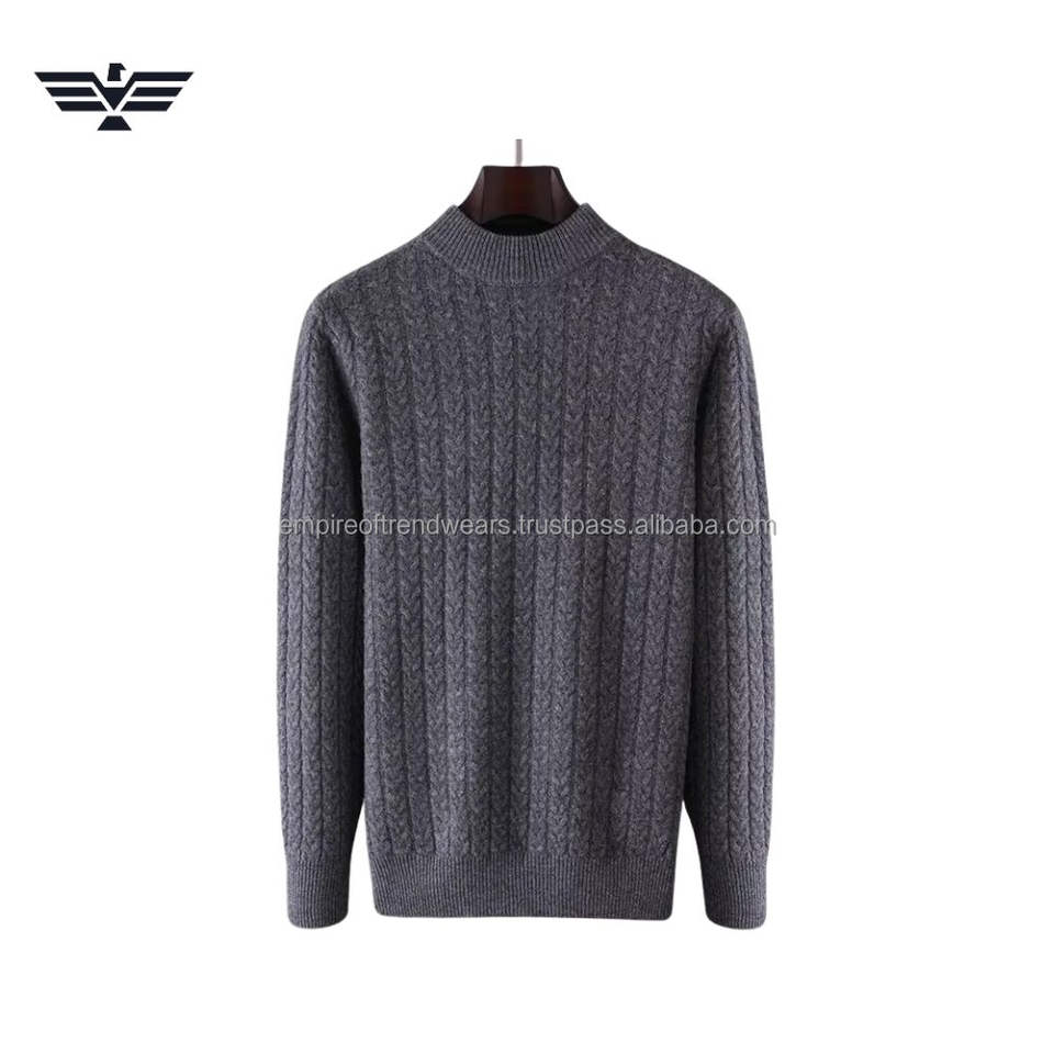 Pull à encolure ras du cou en tricot torsadé 100% coton pour hommes, anti-rides, anti-rétrécissement, épais, 300g, modèle OEM