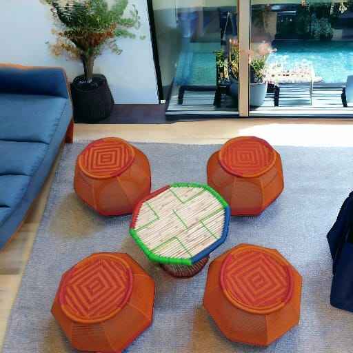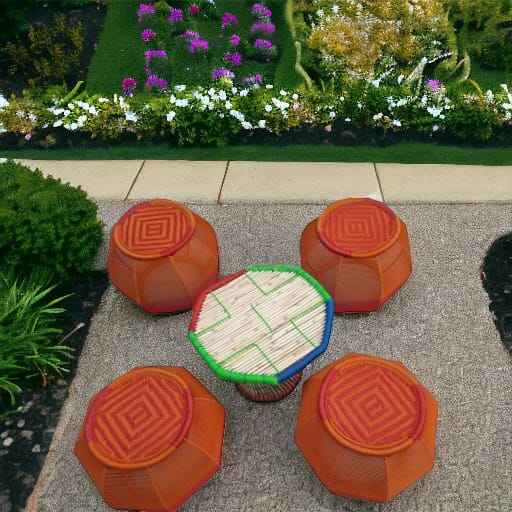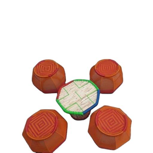 Latest Price Elegant New Style Handmade Bamboo Cane Ottoman Stool Set With Table for Outdoor Balcony Terrace Garden Cafe