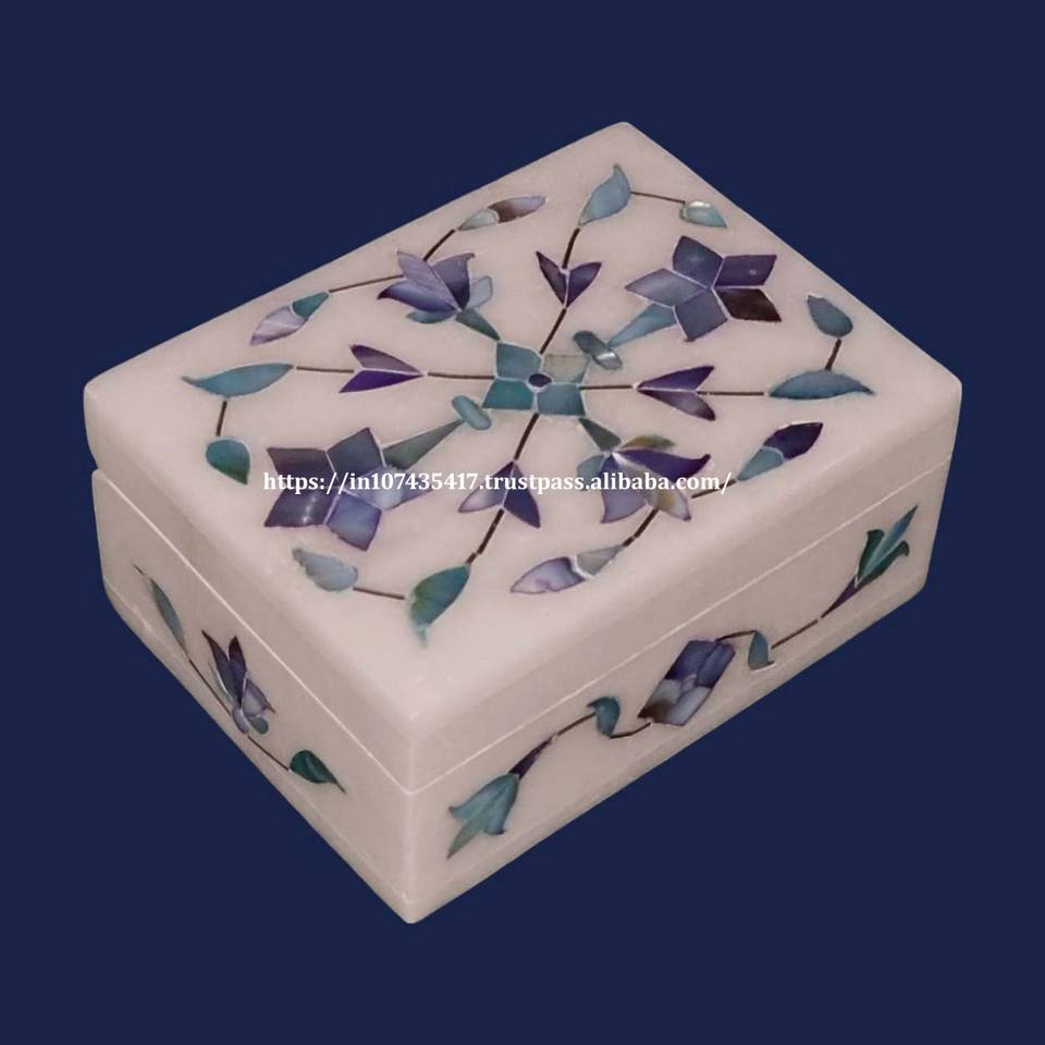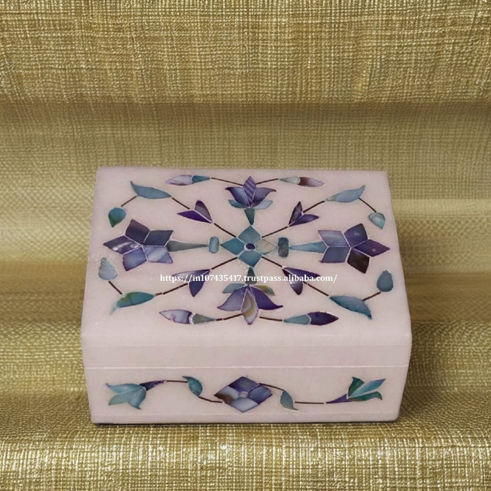 Dernière production de belles boîtes de rangement de bijoux en nacre bleue et verte pour les cadeaux du festival du Ramadan prêts à être expédiés