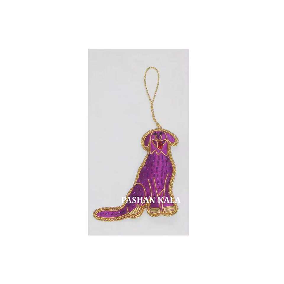 Dernière production de broderie Zari doré avec ornement suspendu de Noël en forme de chien perlé pour la décoration de la maison et de la fête