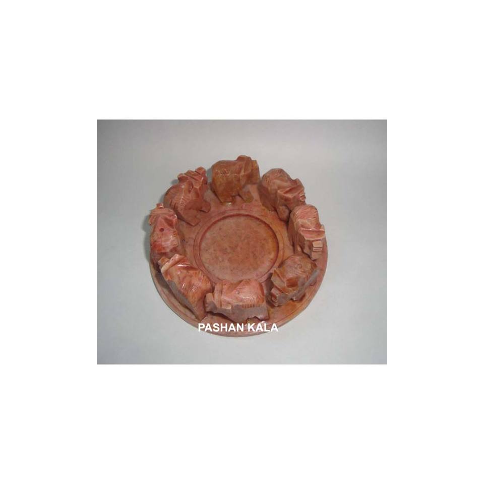 Dernière production de bougeoir en pierre ollaire sculpté à la main, forme ronde avec huit éléphants, pour la décoration de la maison et comme cadeau d'affaires