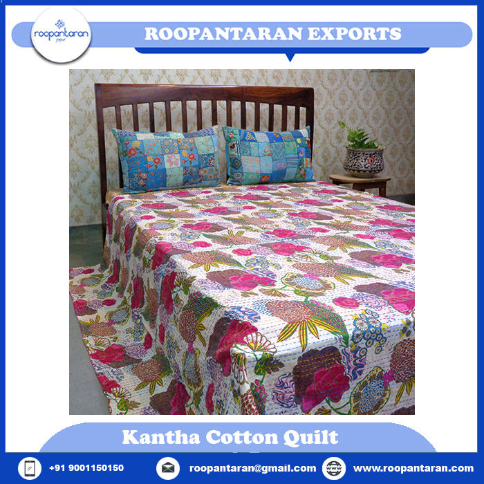 Couette sérigraphiée Kantha en coton brodé à la main du fabricant direct