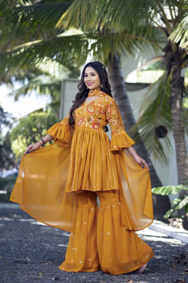 Ensemble droit Kurta Sharara & Dupatta