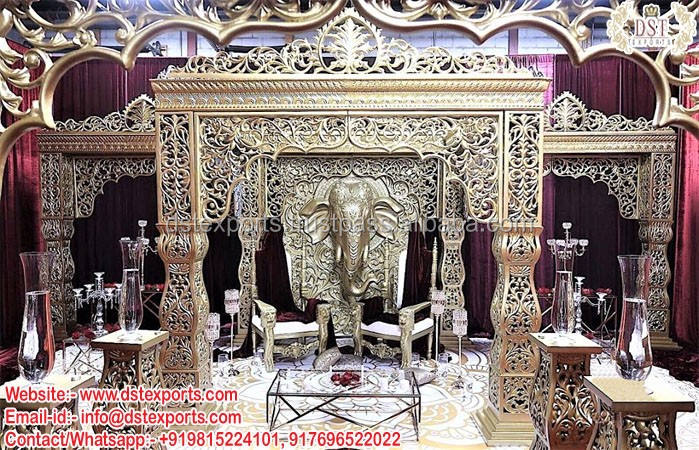 Vastar — Mandap de mariage or du sud-indien, avec décoration de Dom Grand mariage King, dernière collection