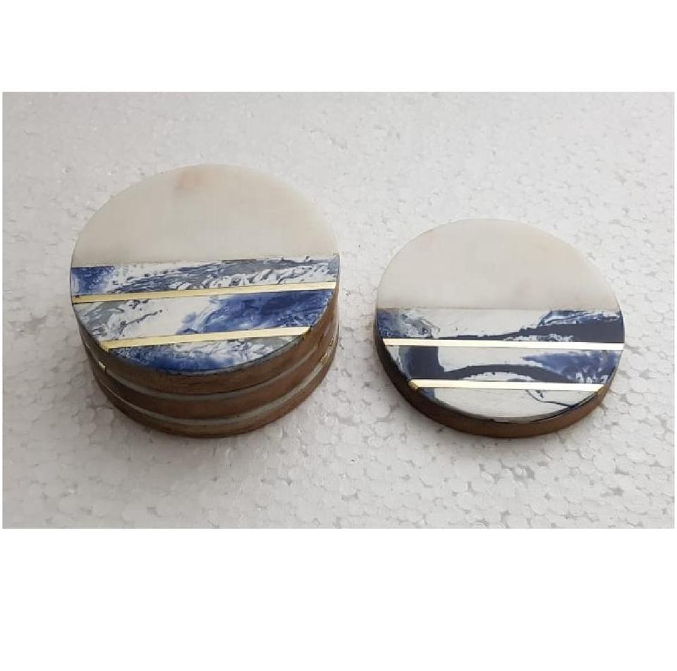 Ensemble de sous-verre joint en marbre, dernière conception de résine, 6 pièces, un ensemble d'accessoires cadeaux, boîte OEM classique personnalisée