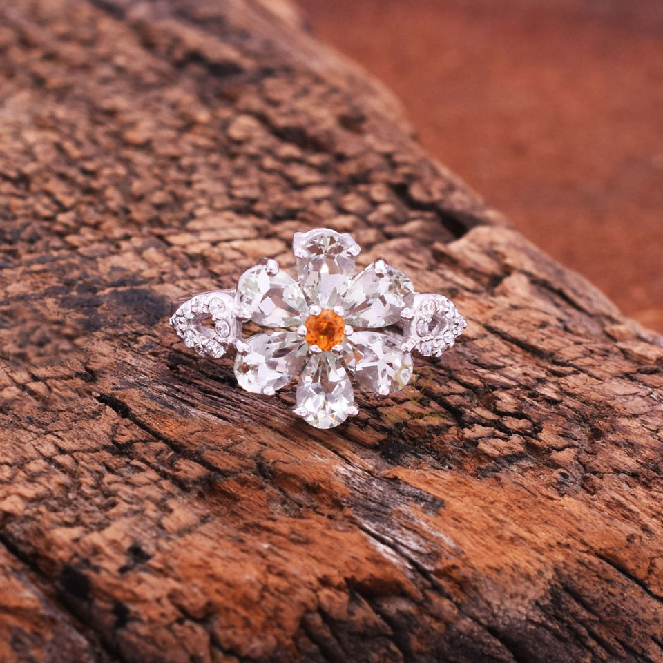 Dernière bague fleur romantique qualité vert améthyste Citrine pierre précieuse 925 argent Sterling plaqué rhodium mode à la mode en gros