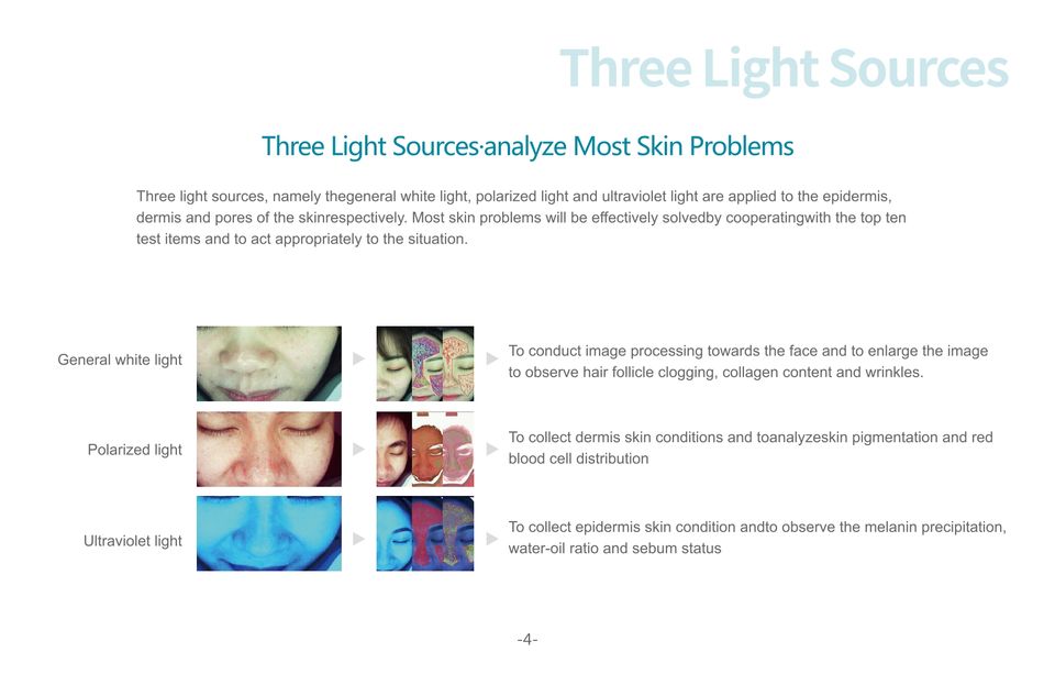 Analyseur facial 3D de peau de la dernière machine intelligente de scanner facial de 3 sources lumineuses de miroir magique d'IA