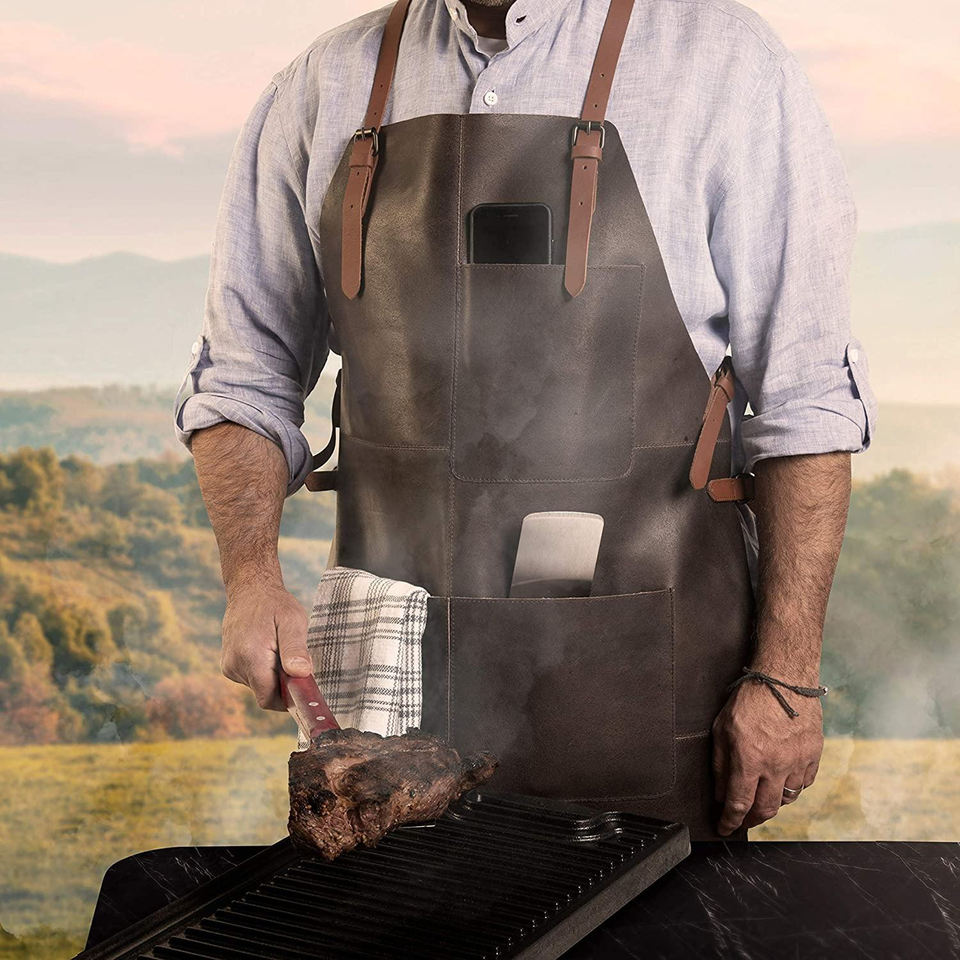 Tabliers dernier style en cuir fabriqués en cuir couleur tabliers en gros disponibles en bas quantité minimale de commande