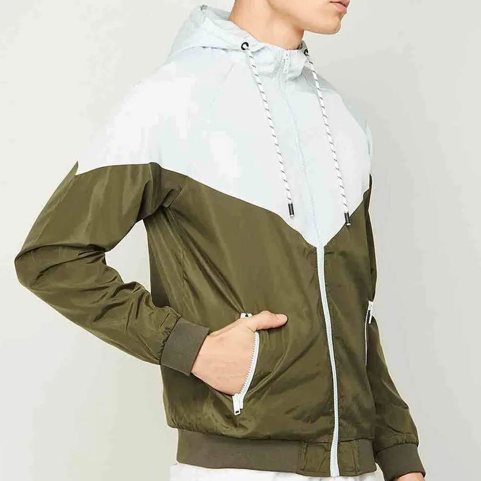 Veste coupe-vent en toile de style actuel 2026, légère, personnalisée, capuche, logo avant, coupe-vent, vêtements de sport pour hommes