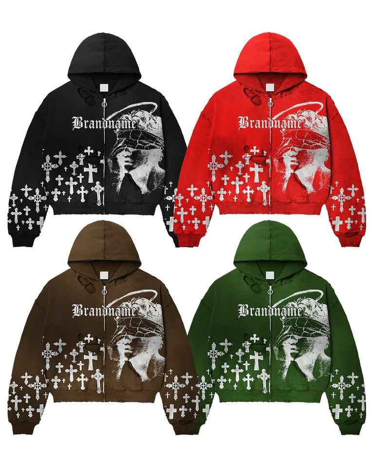Dernier Style de Haute Qualité Top Tendance Coton Éponge Français Fabrication Personnalisée Lavage À L'acide Distressed Hoddies Sweatshirts Unisexe.