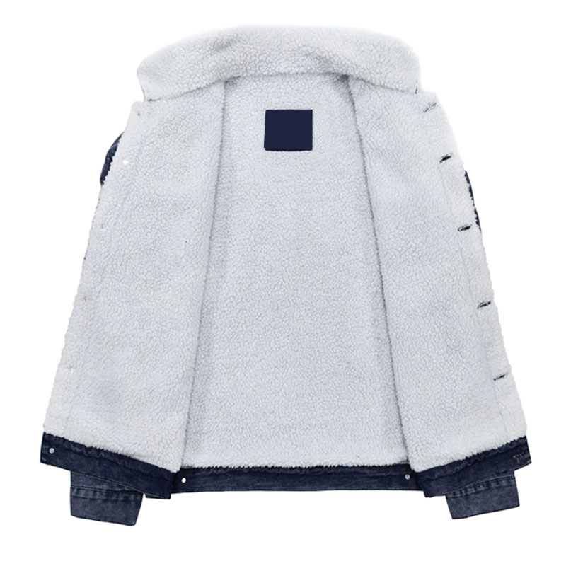 Veste en jean denim d'hiver pour hommes de style dernier cri décoration en fourrure ouverte col montant veste tricotée en toile et coton à imprimé uni