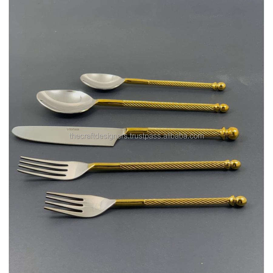 Ensemble de couverts en argent de style moderne, poignées dorées, passe au lave-vaisselle, couverts et argenterie de luxe, fournitures pour événements de mariage et de fête