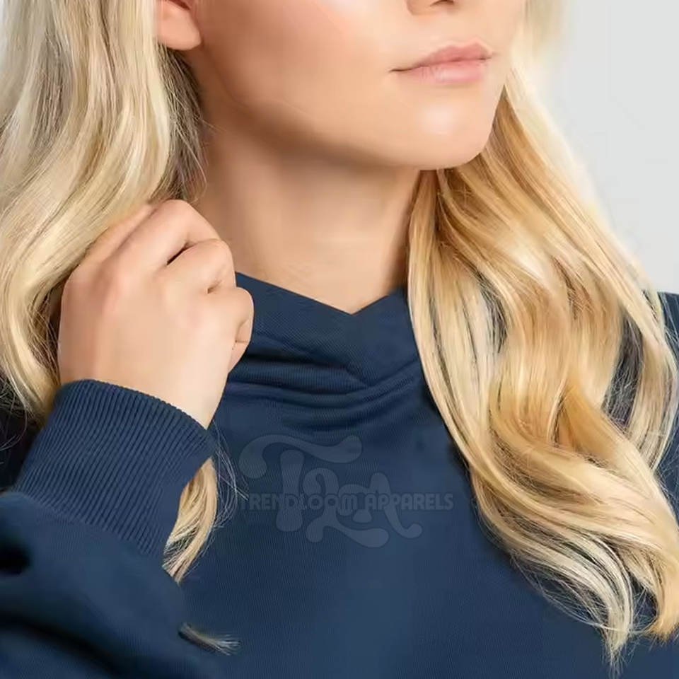 Nouveauté : Sweat à capuche court tricoté décontracté pour femme, couleur unie, logo personnalisé sur le devant, 100 % coton, écologique, vente en gros