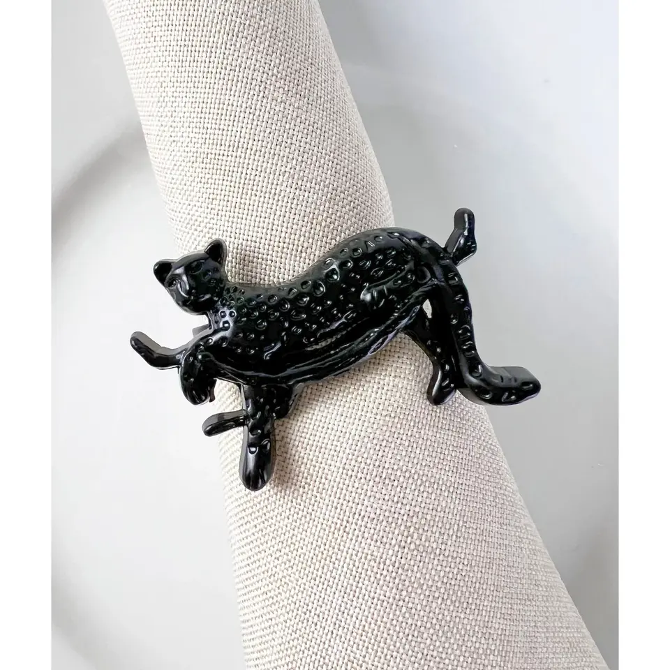 Derniers styles ronds de serviette en métal léopard