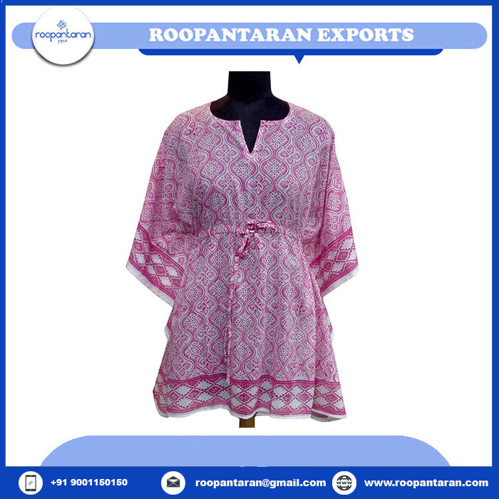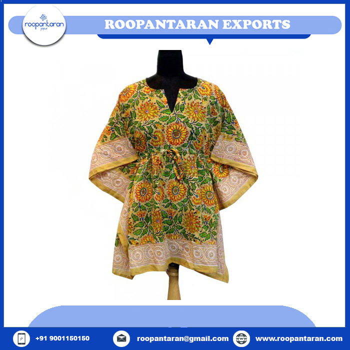 Dernier Kaftan de Luxe Stylisé Taille Standard 100% Coton Imprimé à la Main à Manches Courtes Magnifique Plage Grande Taille Vente Prix Bas