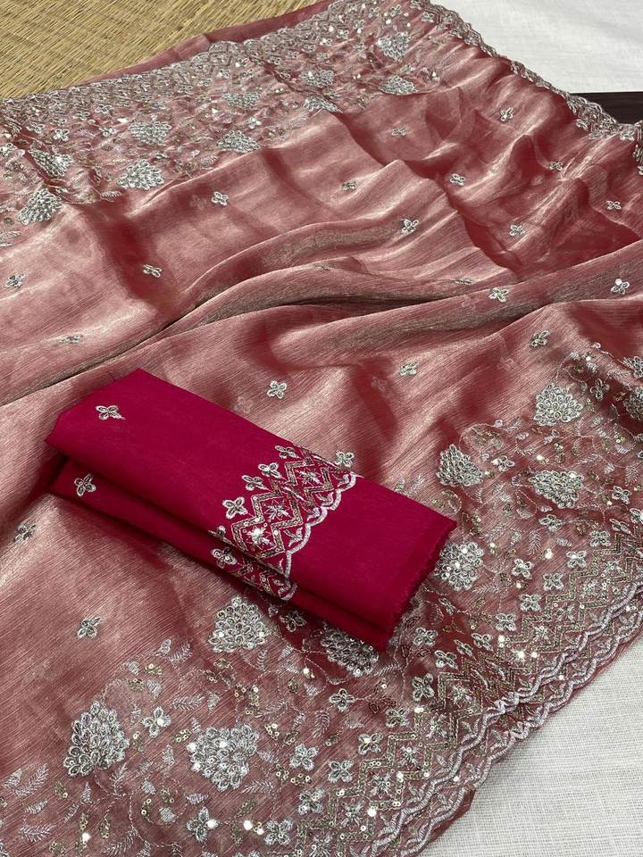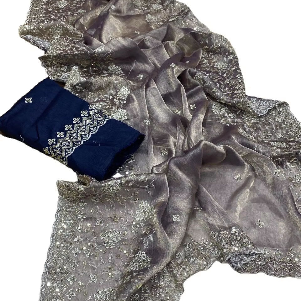 Dernier modèle élégant de style Bollywood, Jimi Choo, travail de pierres, spécial Saint-Valentin, couleur vive, bordure en dentelle, travail en viscose et polyester