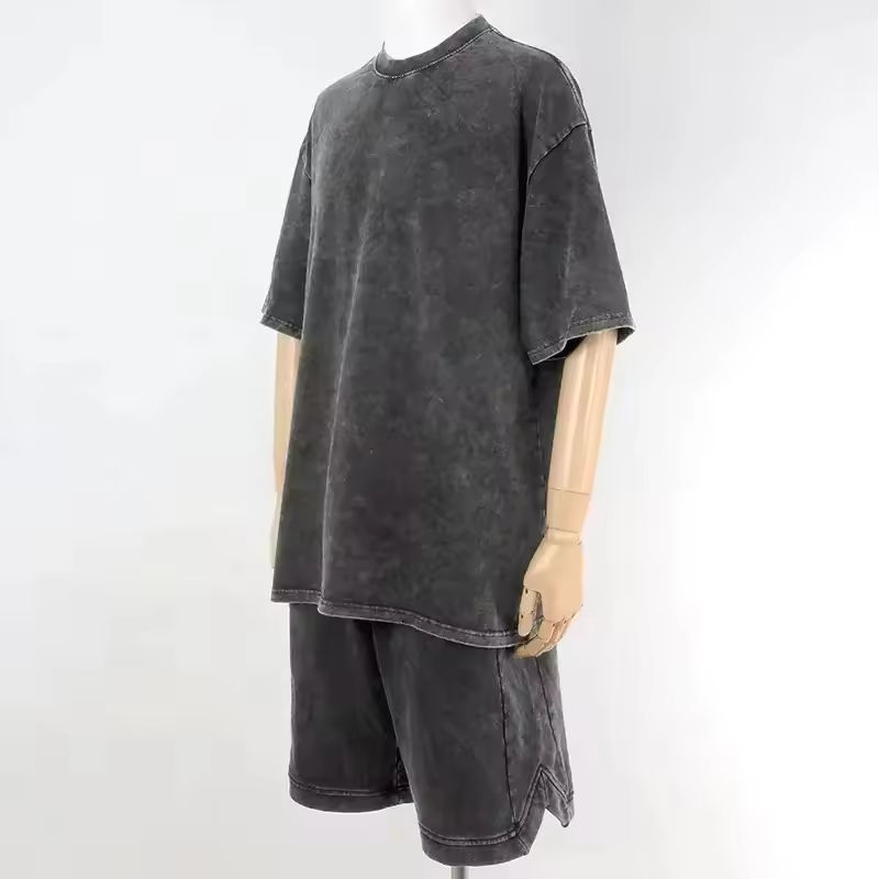 Nouvelle Collection Été : Ensemble Homme Brodé avec Bande Latérale Contrastante – T-shirt et Short en Tissu Éponge Séchage Rapide, Motif Uni, Grandes Tailles