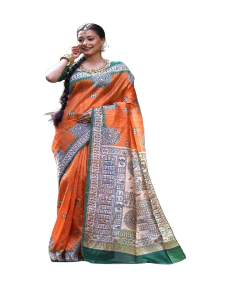 Travailler:Pallu contrasté imprimé warli traditionnel et bordure contrastée unique