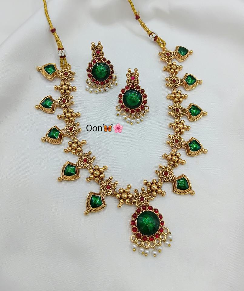 Products Name:Traditional Temple Necklace Jewellery Set with Earrings