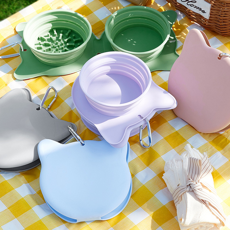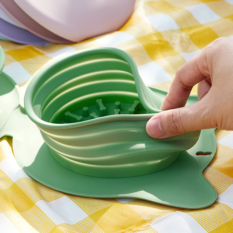 Bol de voyage portable pliable pour chien en silicone souple mangeoire lente bol pour chien eau et nourriture Double chat bols et mangeoires pour animaux de compagnie
