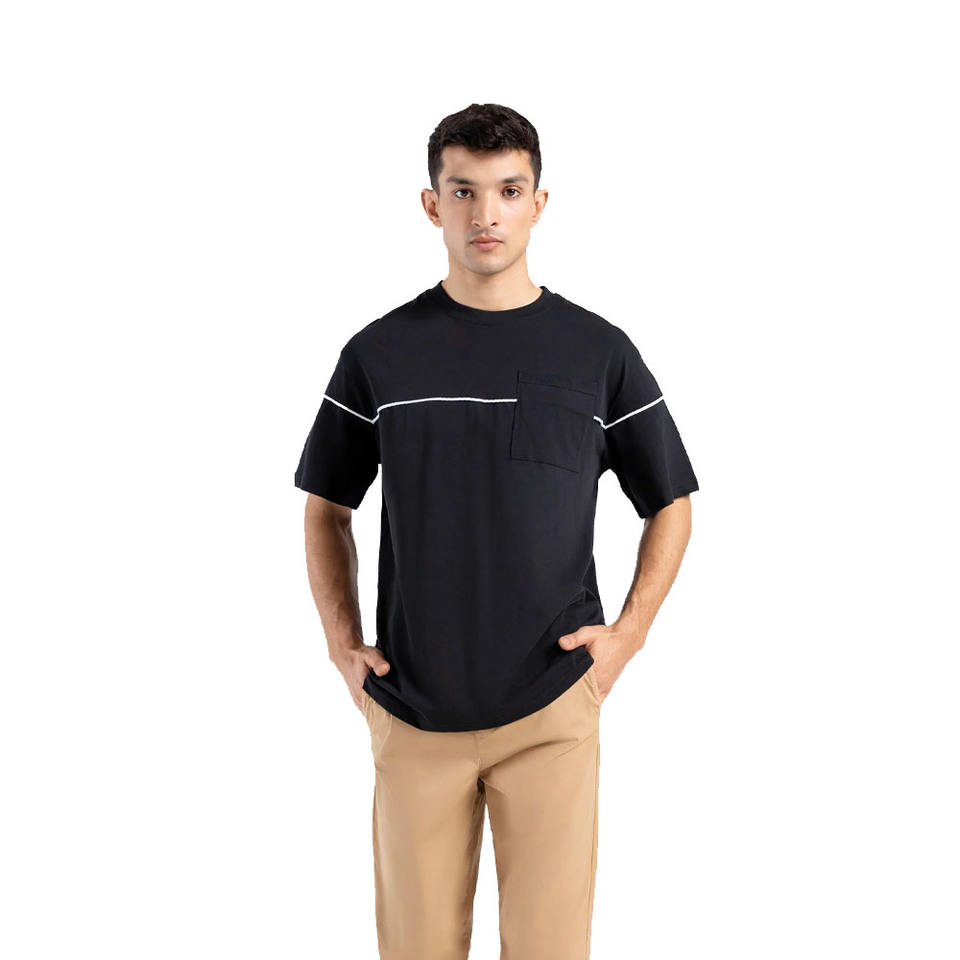 Dernières tendances T-shirt homme 100% coton noir coupe décontractée col rond surdimensionné avec poche poitrine 260 grammes poids du tissu en vente