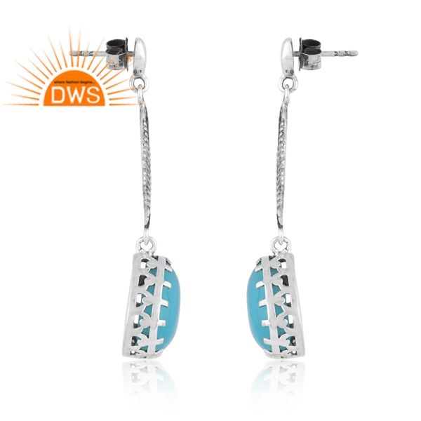 Dernière tendance en argent Sterling oxydé naturel Aqua calcédoine pierres précieuses balancent boucle d'oreille bijoux personnalisés pour les femmes cadeau pour elle