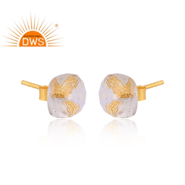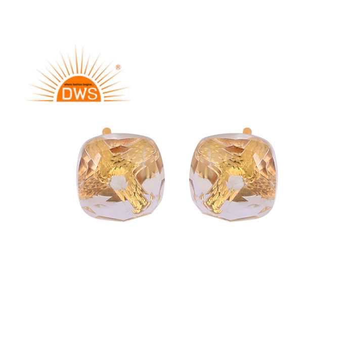 Dernières tendances Boucles d'oreilles en argent sterling plaqué or 18 carats avec améthyste verte naturelle Demi Fine Jewelry pour femmes