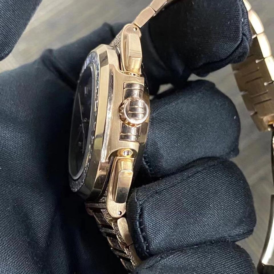 Montre en quartz moissanite carrée de luxe personnalisée | Conception squelette glacé VVS | Bague en or jaune | Testeur de diamants Passes