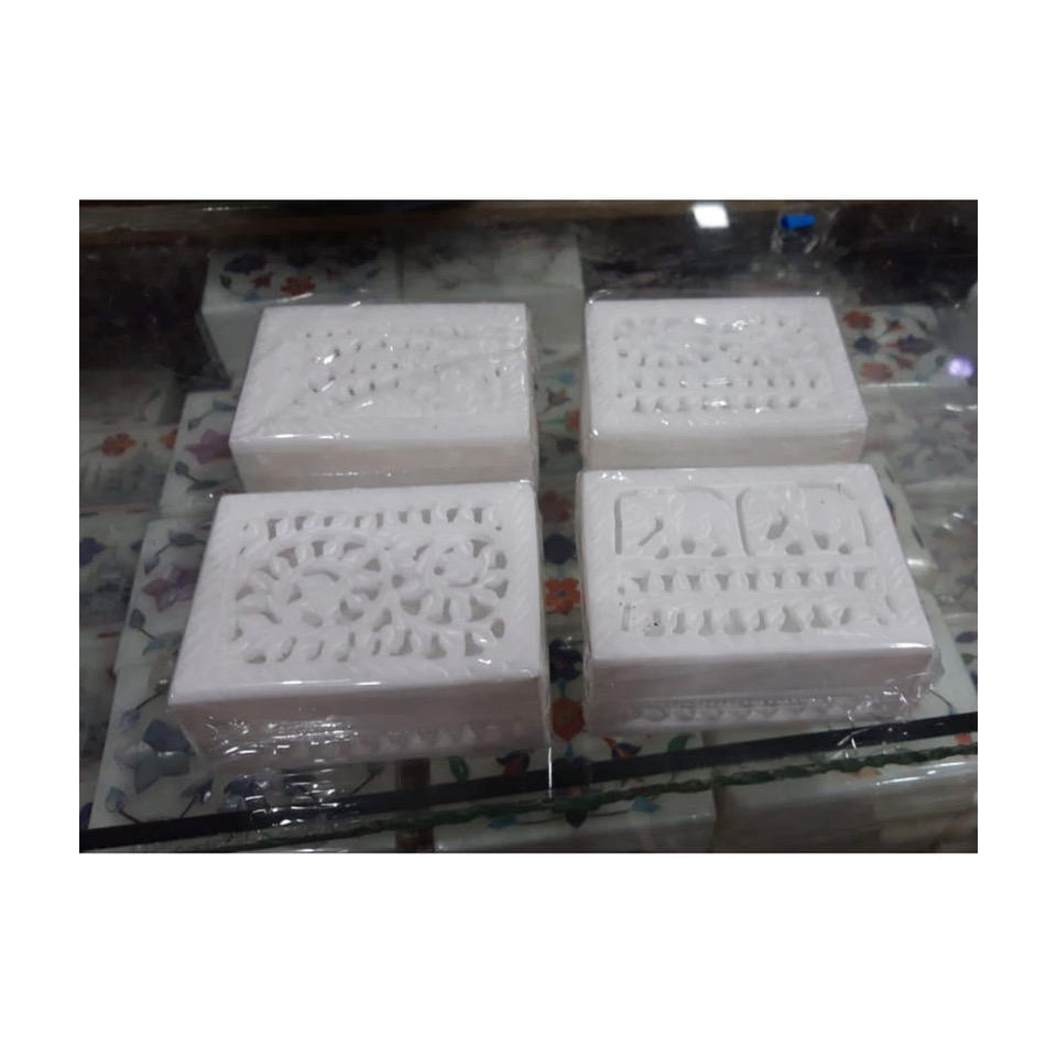 Boîte à bijoux en marbre italien tendance, faite à la main, incrustée, surface polie brillante, forme rectangulaire, couleur blanche, pour le rangement des bijoux