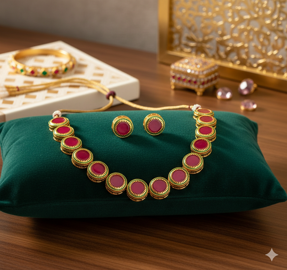 Nouvelle Collection Tendance : Parure de Bijoux Géométriques en Cuivre Plaqué Argent avec Zircon et Kundan – Collier Ras-du-Cou Perlé et Boucles d'Oreilles pour Femme, Idéale pour les Fêtes