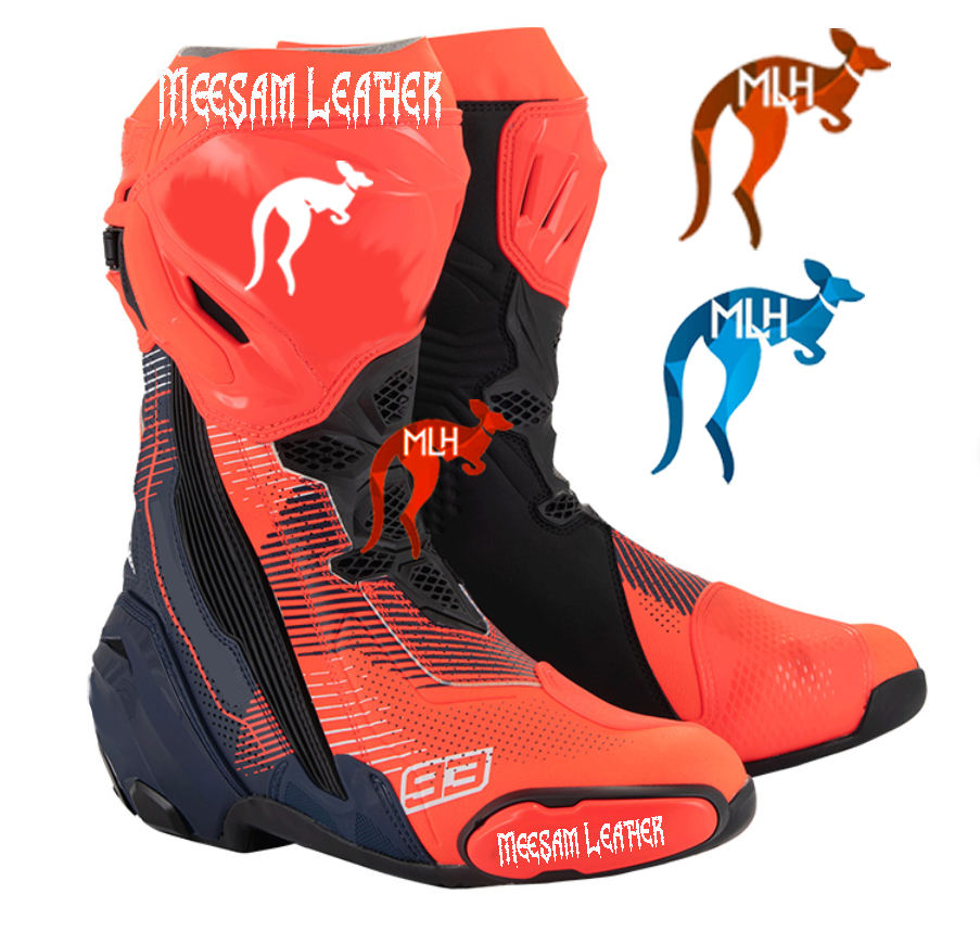 Bottes de moto en cuir pour hommes, design unique et tendance, qualité supérieure, doublure en mesh respirant, style course, ventilées, blanches