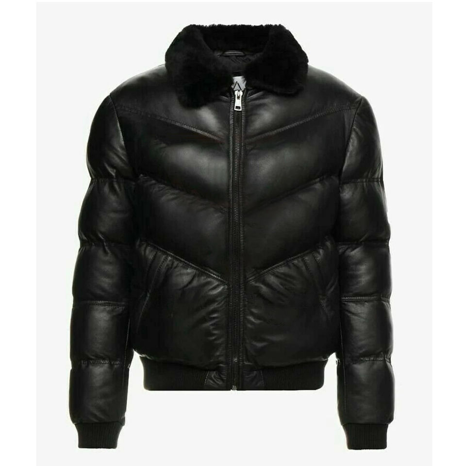 Dernier modèle de veste d'hiver pour homme, en cuir véritable, style bomber, matelassée, avec col en fourrure noire, chaude, grande taille.
