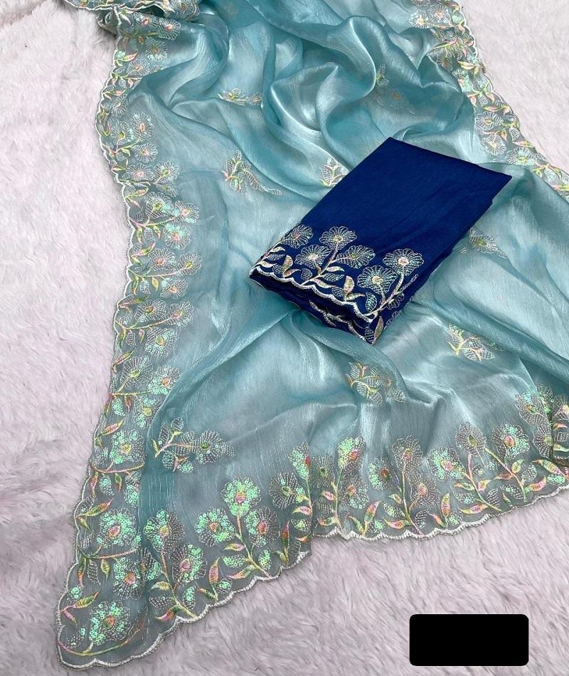 Saree de travail Butta avec chemisier, fil fantaisie, broderie, bordure à coupe d'arc pour vêtements pour femmes indiennes et pakistanaises.