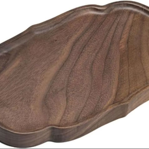 Plateau de service rectangulaire en bois massif, design rustique avec motif d'arbre sculpté, pour cuisine et salle à manger, décoration intérieure.